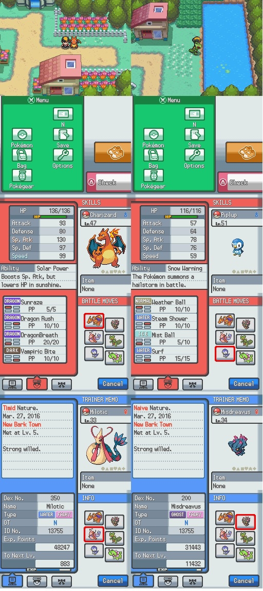 Starters are now more competent with new abilities, moves and type changes such as Venusaur with Thick Fat, Blastoise with Drizzle, Feraligatr with Shed Skin, Sceptile with Adaptability, or the Water/Ice-type Empoleon with Snow Warning. However, to maintain the balance in game evolution level are raise to 25 for 2nd stage and 46 for final stage Pokemon, whose Lv-up rates are also changed to slow. I think it’s great to spend more time in game with the 1st and 2nd stage Pokemon.