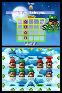 This is an adaption of the arcade game Whac-A-Mole, for Nintendo’s handheld devices. At the screen you have a 5×4 grid of holes (3×3 in the GBA version). As the game begins, moles will randomly pop up their heads in the holes. Now you have to hit them before they disappear again. DS users will use the stylus and tap the moles, while GBA users will have to use the directional pad to move a marker around the screen.